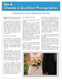 It includes Seven Questions Every Bride Should Ask, and What to Look For in a Professional Portfolio.
